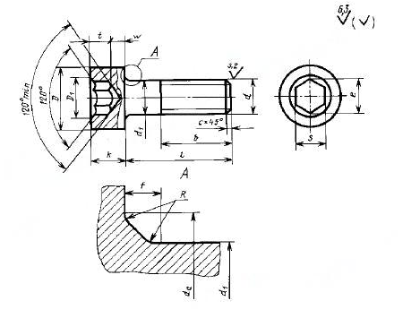 Винт с цилиндрической головкой и шестигранным углублением, класс точности А ГОСТ 11738-84